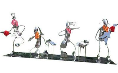 不銹鋼鏤空噴漆雕塑的制作工藝十分復雜,首先要將不銹鋼板材進行鏤空加工,以獲得設計者想要的雕塑形狀,然后將雕塑表面進行處理,以增強其表面的硬度,提高其耐腐蝕性,最后將雕塑表面噴漆,使其表面色澤更加絢麗多彩。