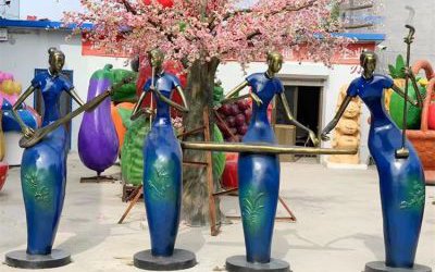 玻璃鋼吹拉彈唱雕塑,抽象音樂仕女雕塑